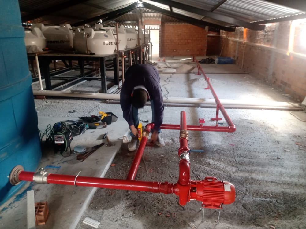 Execução dos serviços de Infra seca, instalação das manoplas, instalação das bombas do sistema e das válvulas, execução de toda a rede hidráulica, execução com equipe especializada e com todos os EPI’s e uniformizada.